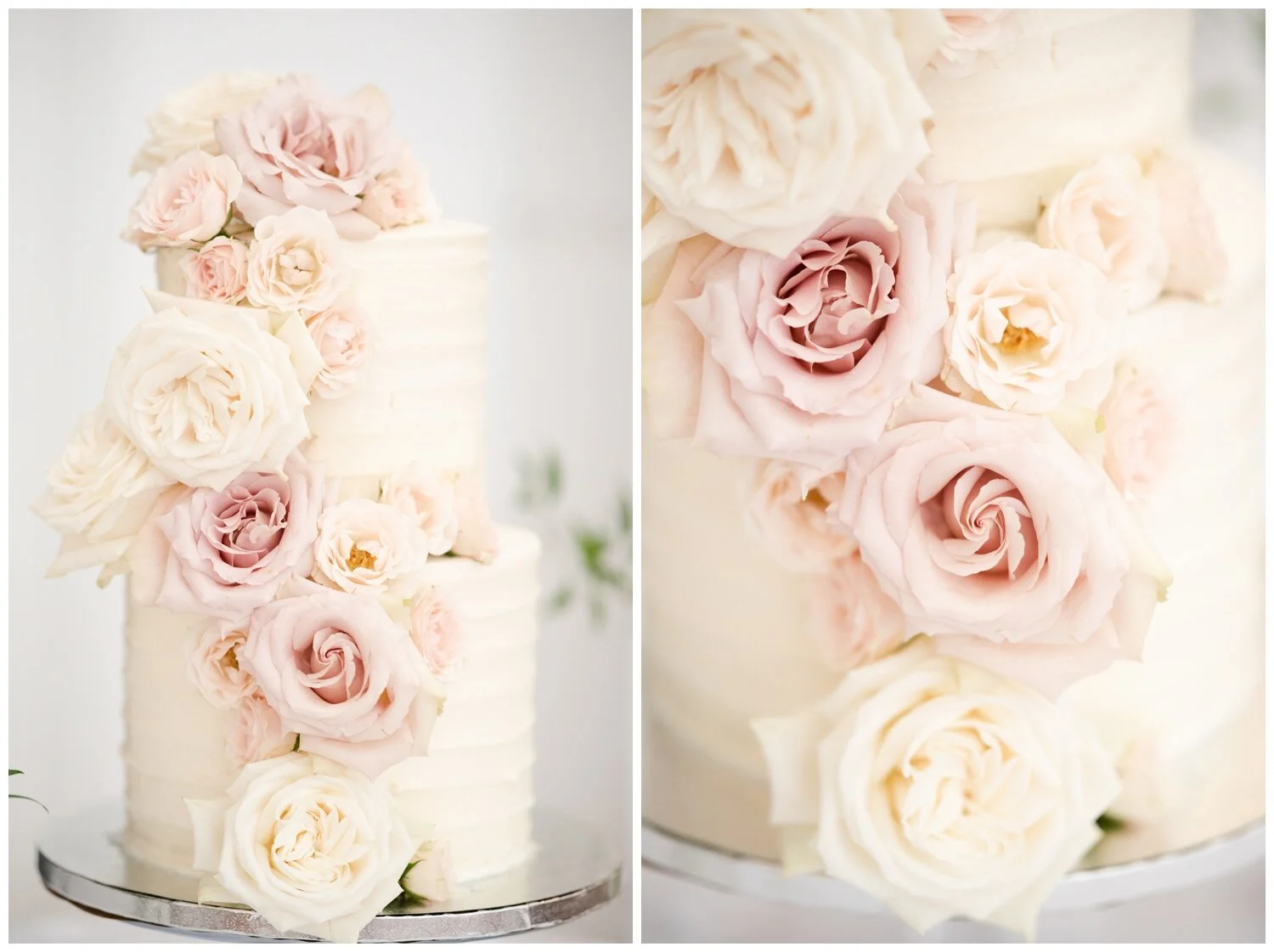 This elegant reception was luxurious and refined. Shades of blush, white and cream with delicate gold details and greenery filled the room. Julie and Michael created one long table for dinner that was decorated with lush flowers and romantic details including lots and lots of candlelight, texture in linens, pink goblets, and the most special, personalized menus and place cards for guests. Julie loved picking out each detail to create the perfect look. Guests were greeted with lavender mint lemonade. And their signature drink was Parker’s French 75 served in a coupe glass.